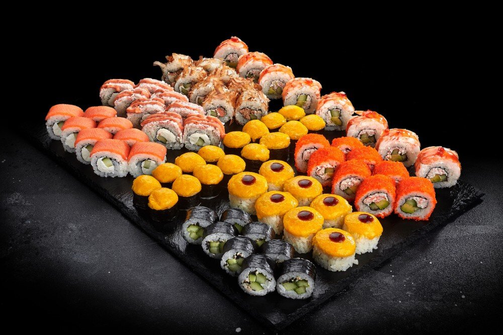 Чикен Терияки Гриль, Шримп Калифорния, Калифорния Классик, Капа Маки, Салмон Терияки, Крабик Гриль, Филадельфия с Крабом, Лососик Гриль, Филадельфия Лайт ( 72 шт )