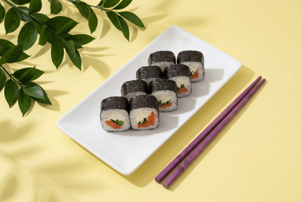 Рис, Нори, Лосось Копченый, Крем Сыр, Лук Зеленый