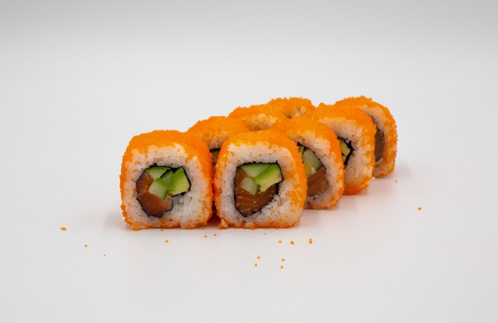 Рис, Нори, Лосось Тар-Тар, Икра Масаго, Огурец, Авокадо