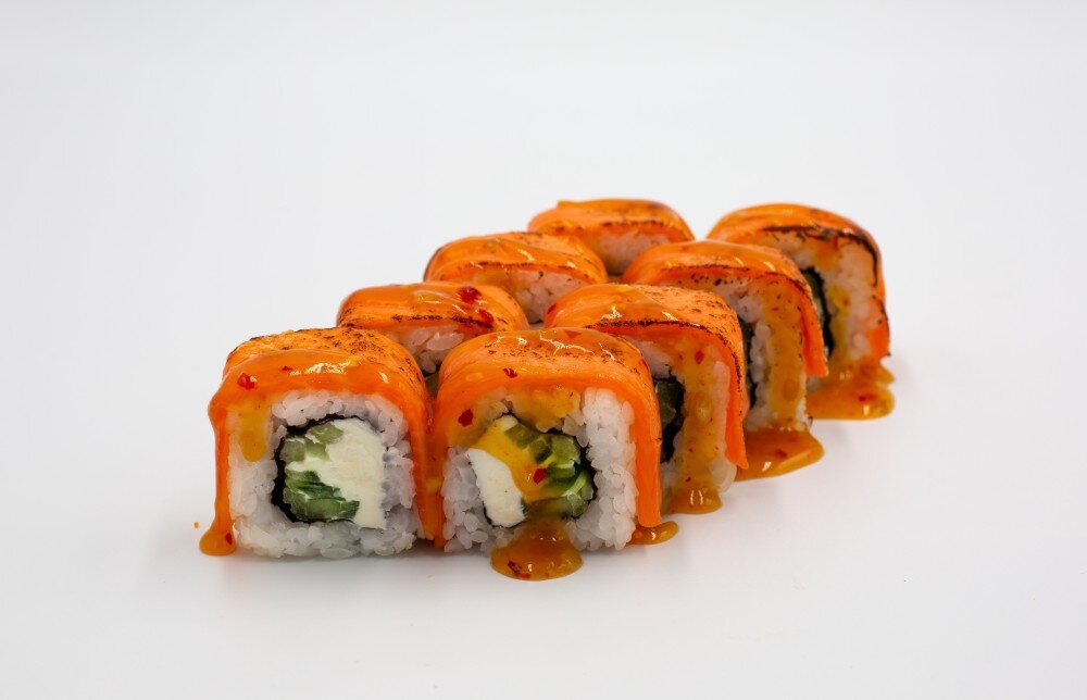 Рис, Нори, Лосось Филе Охлажденный, Крем Сыр, Огурец, манго соус